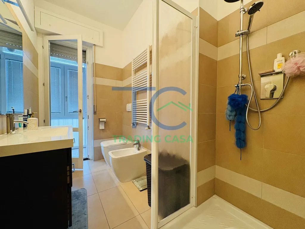 Ci troviamo al quinto piano, penultimo, servito da ascensore, all’interno di un condominio ben tenuto nelle parti comuni, un dettaglio che si percepisce già all’ingresso. L’appartamento è stato completamente ristrutturato e si presenta curato, ordinato e pronto da abitare.