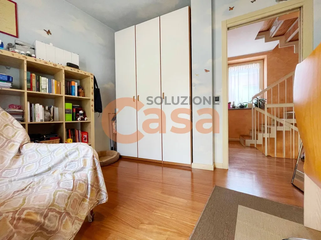 Al piano primo due camere da letto, un bel bagno con doccia, un comodo ripostiglio e un balcone perimetrale con affaccio sul proprio interno.