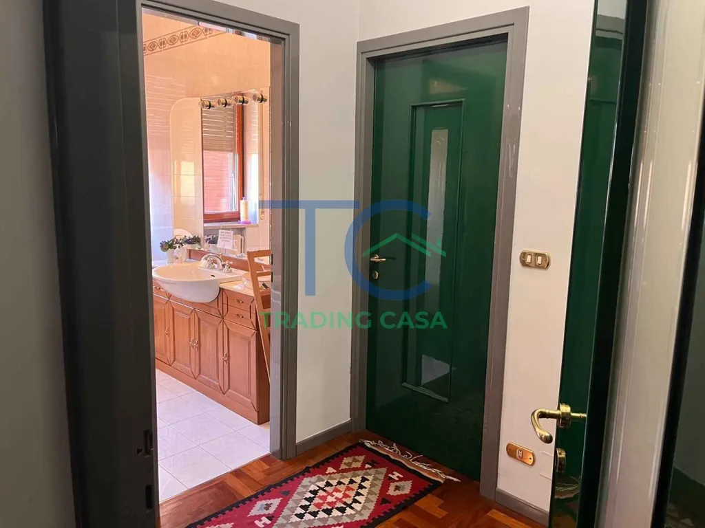 La zona notte, ben separata da un ulteriore disimpegno, ospita due camere matrimoniali e un servizio igienico centrale tra le stesse, ideale per la gestione quotidiana della famiglia.