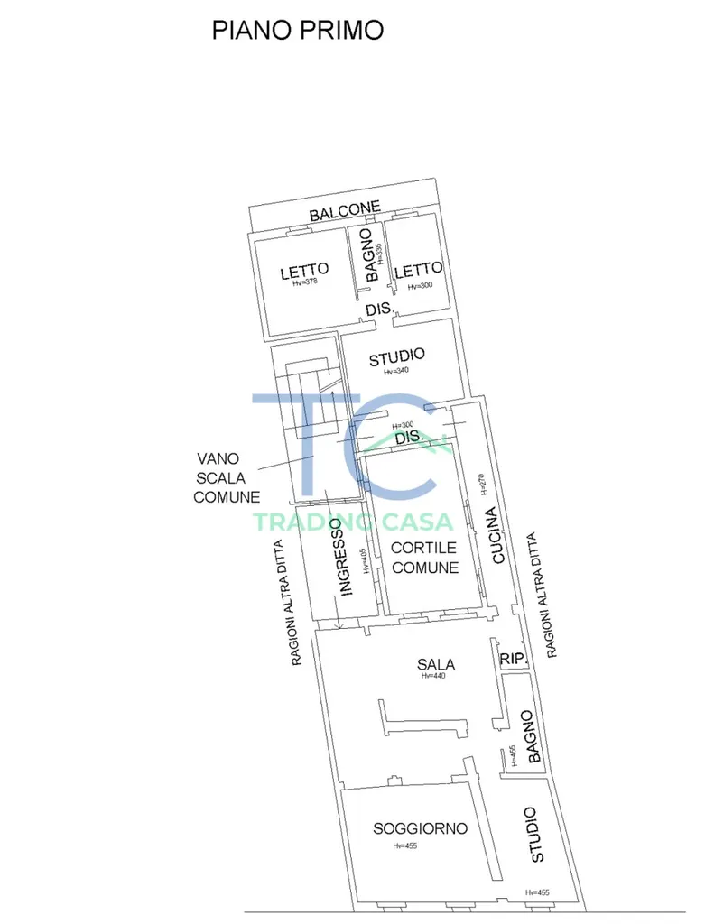 Attraverso una porta comunicante dalla cucina si accede al secondo appartamento, attualmente utilizzato come zona notte. Qui troviamo un ampio studio, disimpegno, una camera matrimoniale con balcone affacciato sul cortile interno, bagno finestrato con doccia e una camera singola con accesso allo stesso balcone.
