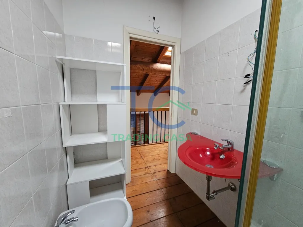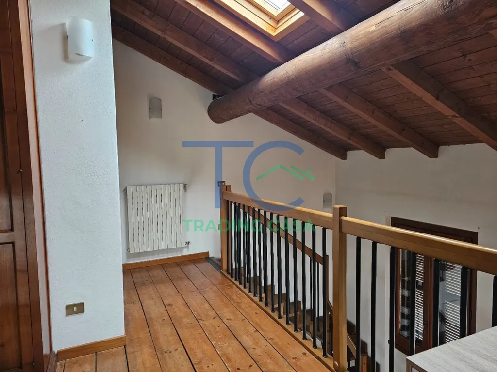 L’ingresso conduce in un grande salone valorizzato dal parquet e dalle travi a vista, elementi che donano calore, personalità e un’atmosfera accogliente. La zona giorno è ariosa, facile da vivere e perfetta sia per rilassarsi che per ricevere amici. Il cucinotto è separato, pratico e funzionale, mentre il primo bagno completa il livello con comodità.