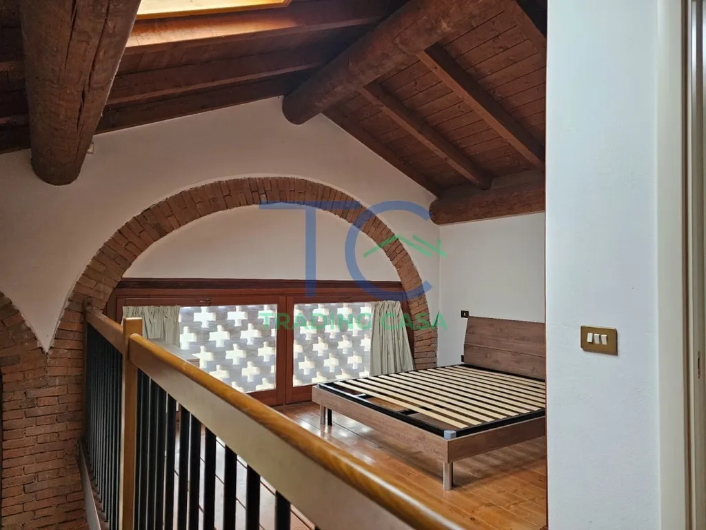 La zona notte si sviluppa sul soppalco, dove trovi una camera matrimoniale di dimensioni generose e un secondo bagno: una soluzione intelligente che separa bene gli spazi e rende la casa fluida nella vita quotidiana, ideale per una coppia o per chi vive da solo ma vuole comfort e privacy.