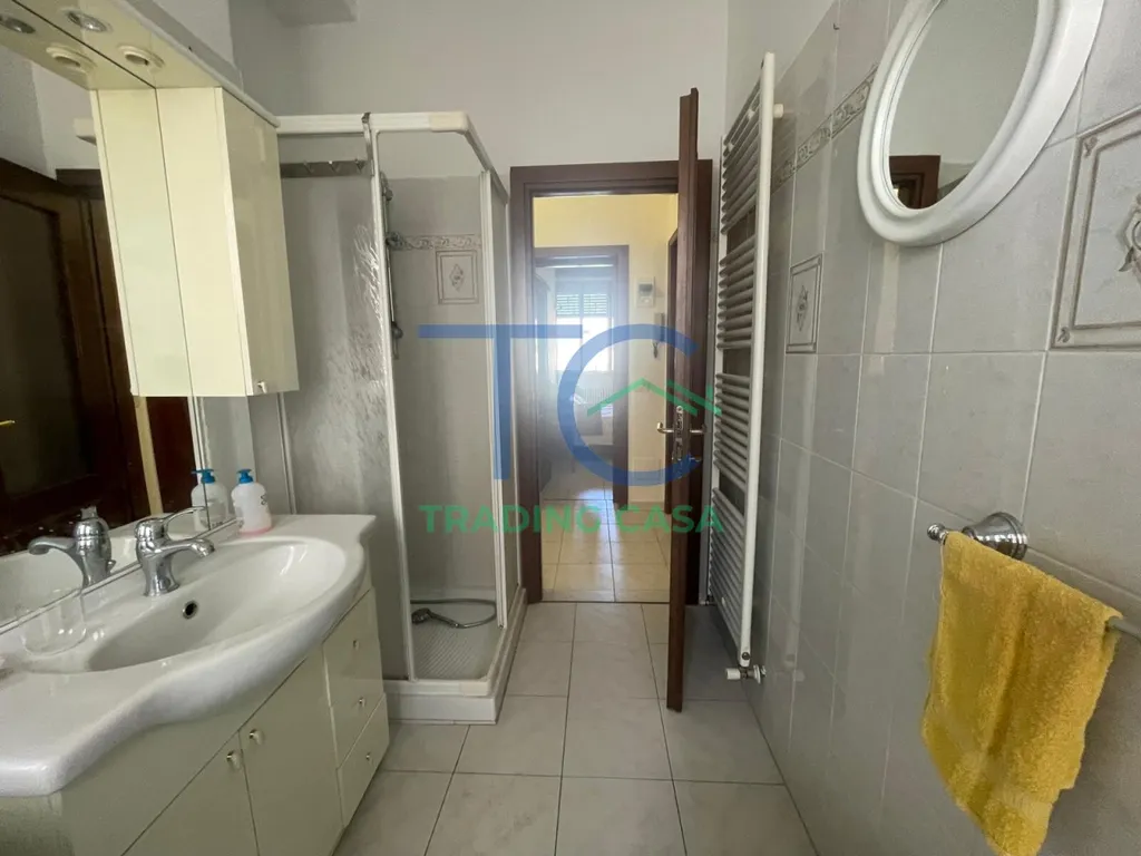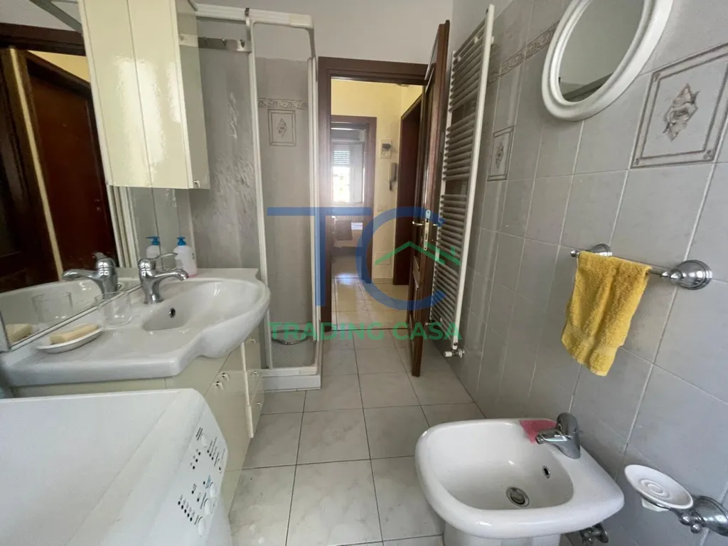 La camera matrimoniale ha il suo sfogo esterno, un dettaglio che cambia le giornate. Apri, fai entrare aria e luce, e lo spazio si trasforma in qualcosa di più personale, più tuo. Il bagno è funzionale, già pronto, senza nulla da rivedere.